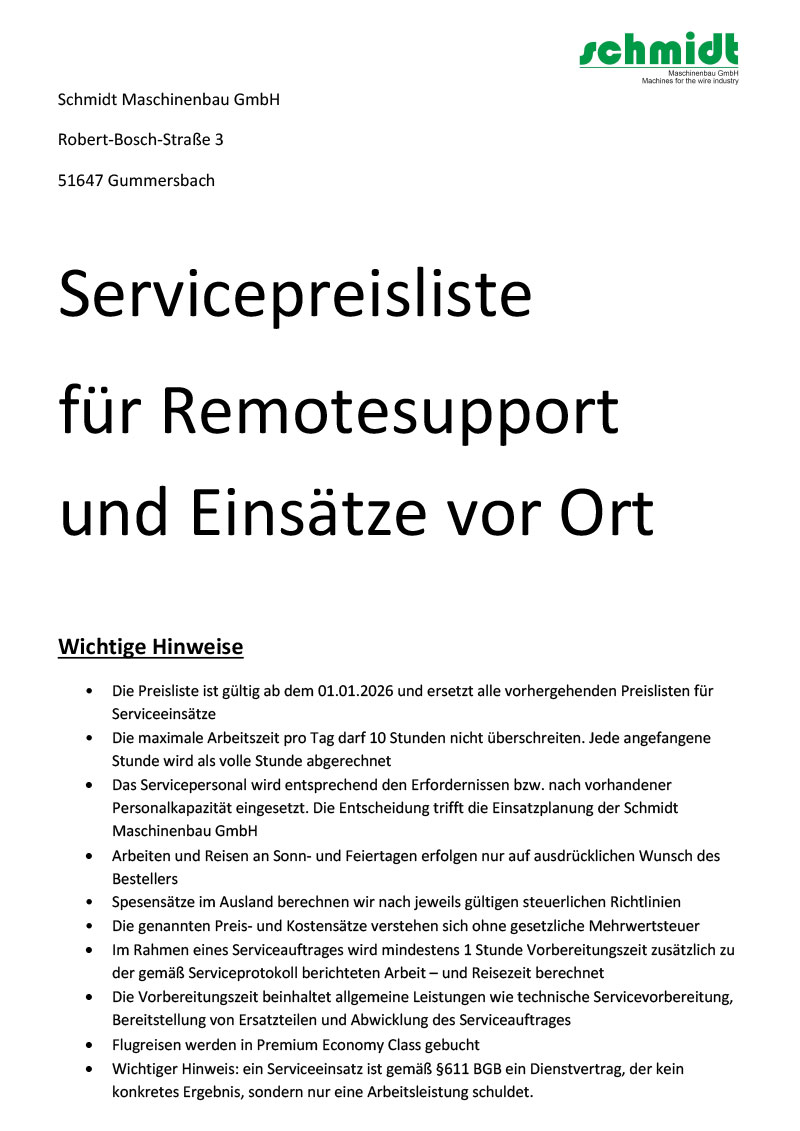 Servicepreisliste